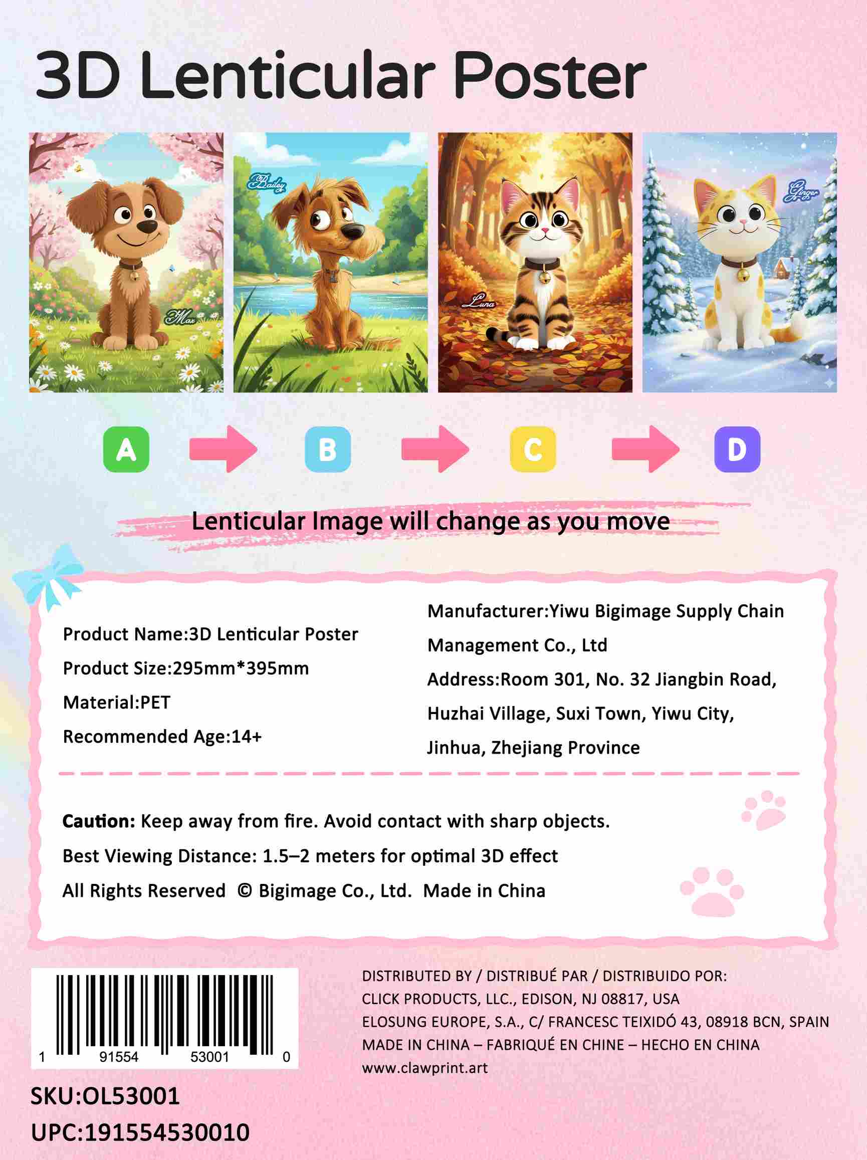 Bring motion to your space with this captivating 3D Lenticular Poster! Watch as the image shifts through four distinct phases (A → B → C → D) right before your eyes, creating a fluid and interactive visual experience as you move.